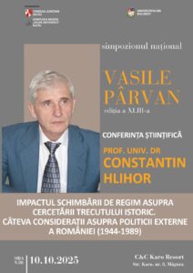 Societatea Științifică de Cercetări Interdisciplinare (SSRCI) are plăcerea de a anunța parteneriatul la Simpozionul Național „Vasile Pârvan”, ediția a XLIII-a, o manifestare de tradiție dedicată cercetării și dialogului academic. În cadrul simpozionului, Prof. Univ. Dr. Constantin Hlihor va susține conferința „Impactul schimbării de regim asupra cercetării trecutului istoric. Câteva considerații asupra politicii externe a României […]